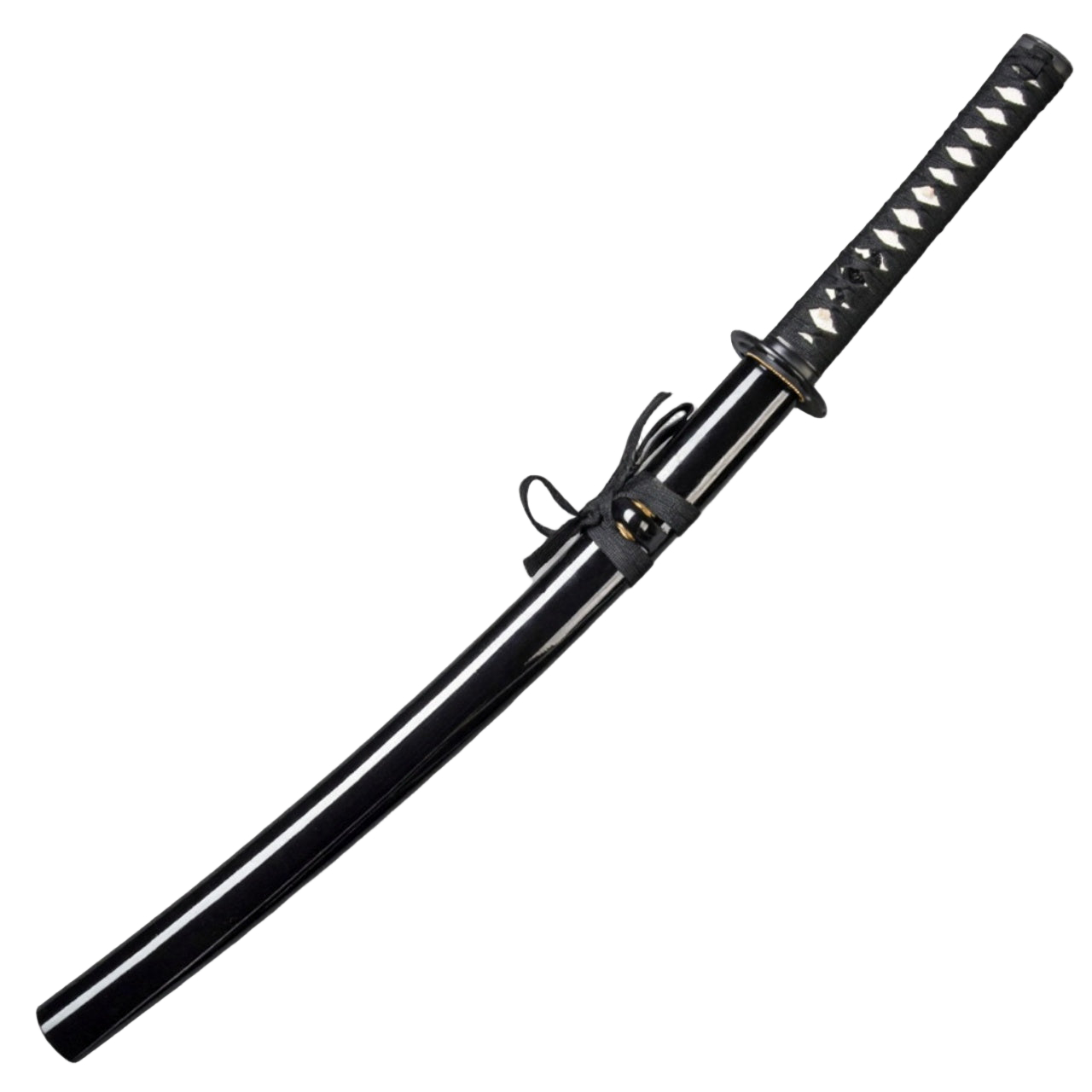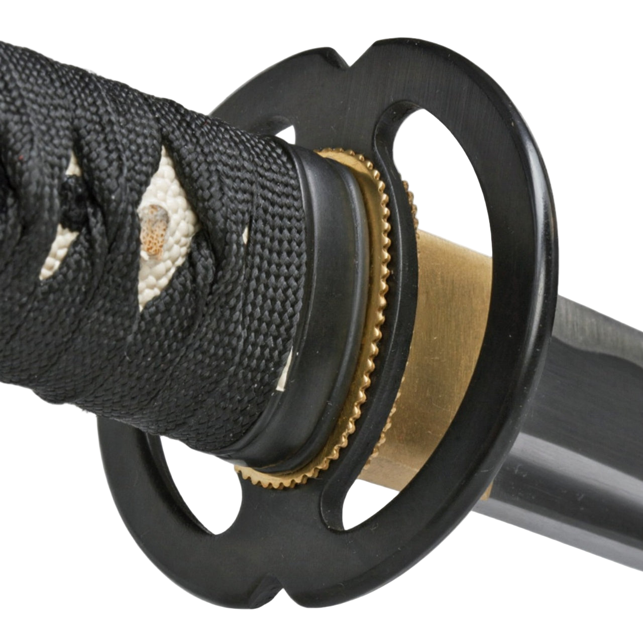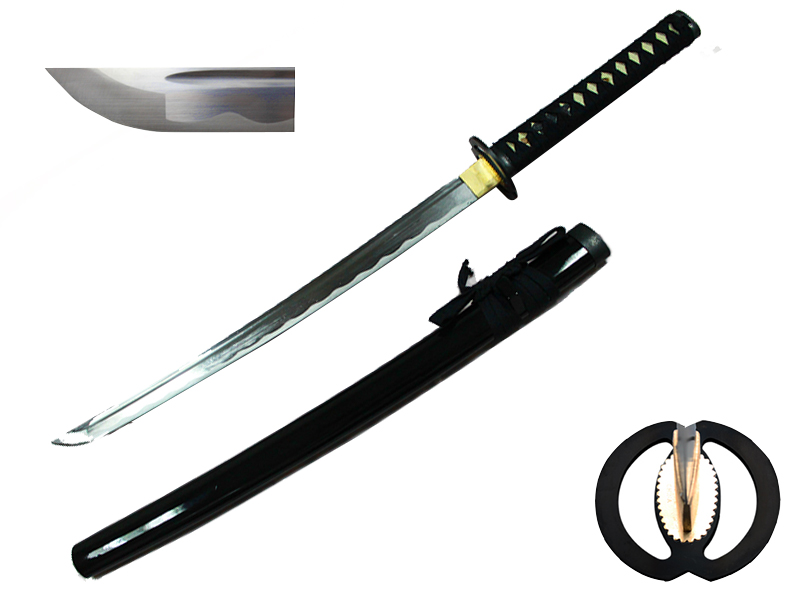 This full tang hand forged Wakizashi Musha sword comes with a hand sharpened razor sharp blade. The blade is made from high carbon steel. Featuring a Musashi ‘double ring’ tsuba with all fittings finished in black metal..