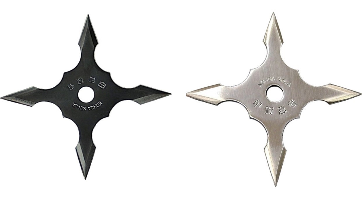 Throwing Stars or Ninja Stars as they are commonly known in the West are traditionally called Shuriken. Shuriken in Japanese is translated as “hidden hand blade” and is a concealed weapon that are used by ninja warriors to distract or misdirect enemies. Made from heavy carbon steel each of the compass 4 blade throwing stars measure 4 inches across and is perfect for ninja throwing training.