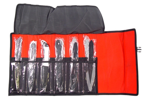 Comes with a black nylon roll out case with plastic locking clips.