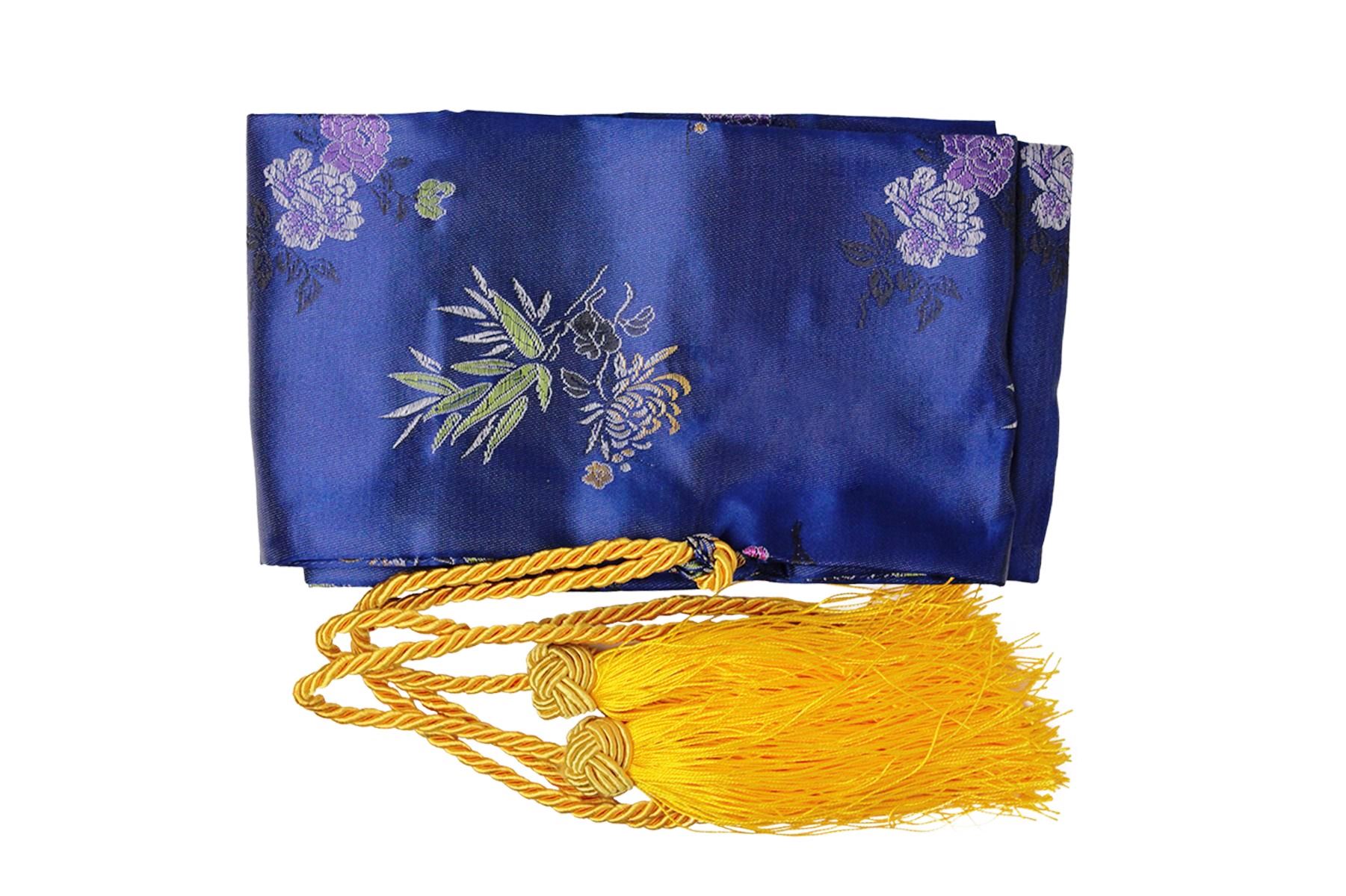 Blue Silk Sword Bag featuring Flower Design with Gold Tassels.