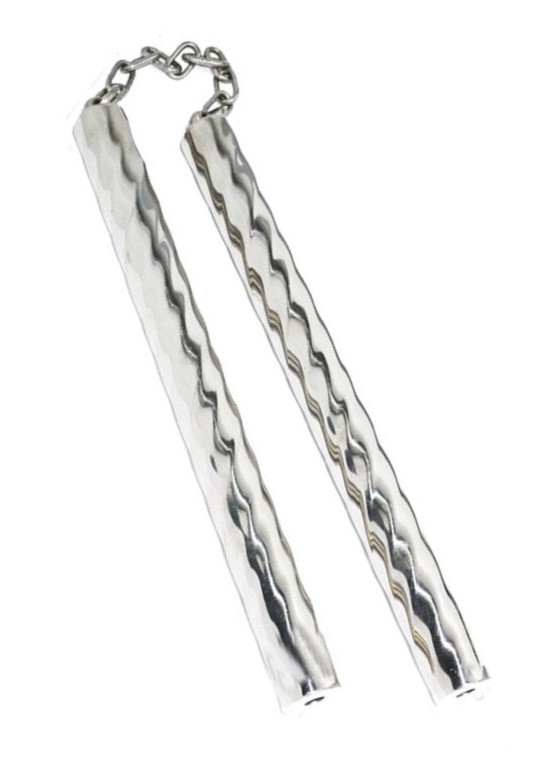 - These light weight twisted stainless steel Nunchaku are light weight but effective. Holes in the bottom of the Nunchaku with a metal ball bearing produces a distinct howling sound when in use
