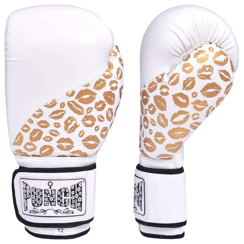 BOXING | FITNESS | PUNCH | Womens BoxingPunch Womens Boxing Glove 12oz – Gold Lip Art – White
