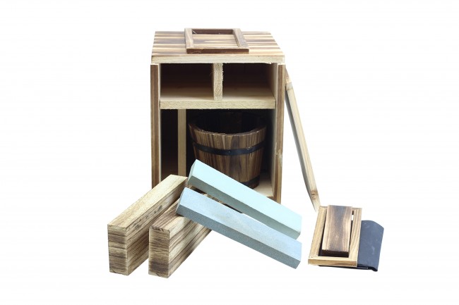 Everything fits in its own wooden box