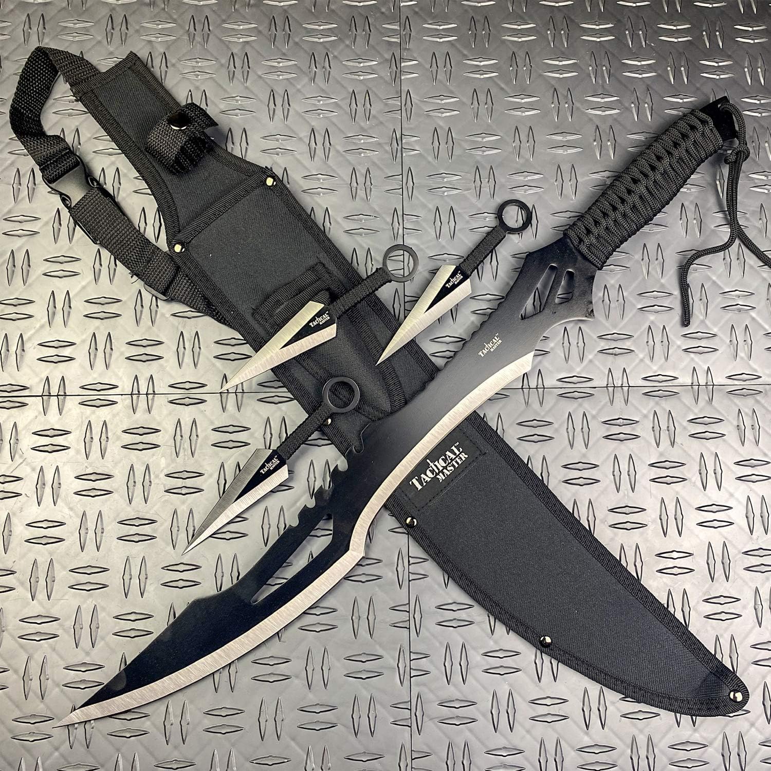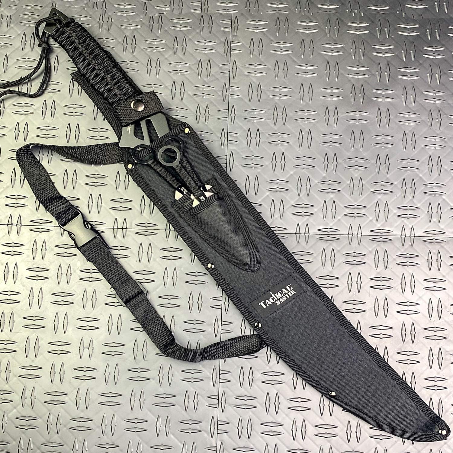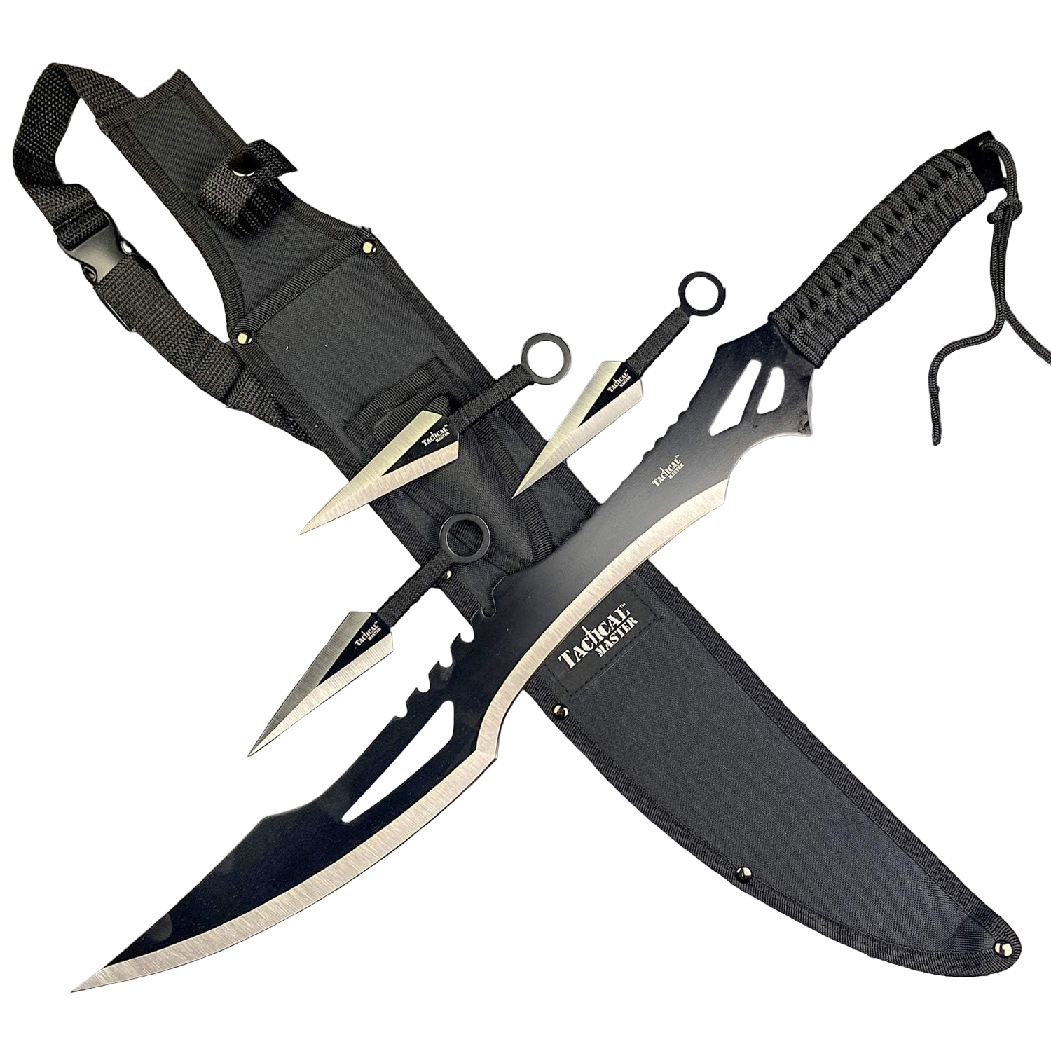 FEATURED | KNIVES | Machetes | Machetes | Ninja Swords | Samurai/Metal Swords | SHOP BY BRAND | Swords / Spears | TACTICAL MASTER | WEAPONSTactical Master 26″ Black Machete & 3 Throwing Knife Set
