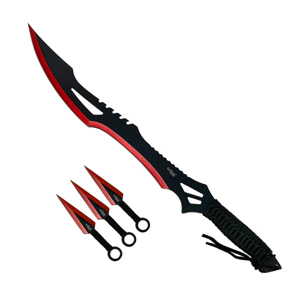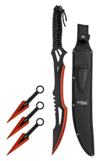 Machetes | Machetes | SWORDS | Swords / Spears | TACTICAL MASTERTactical Master 26″ Red Machete & Throwing Knife Set