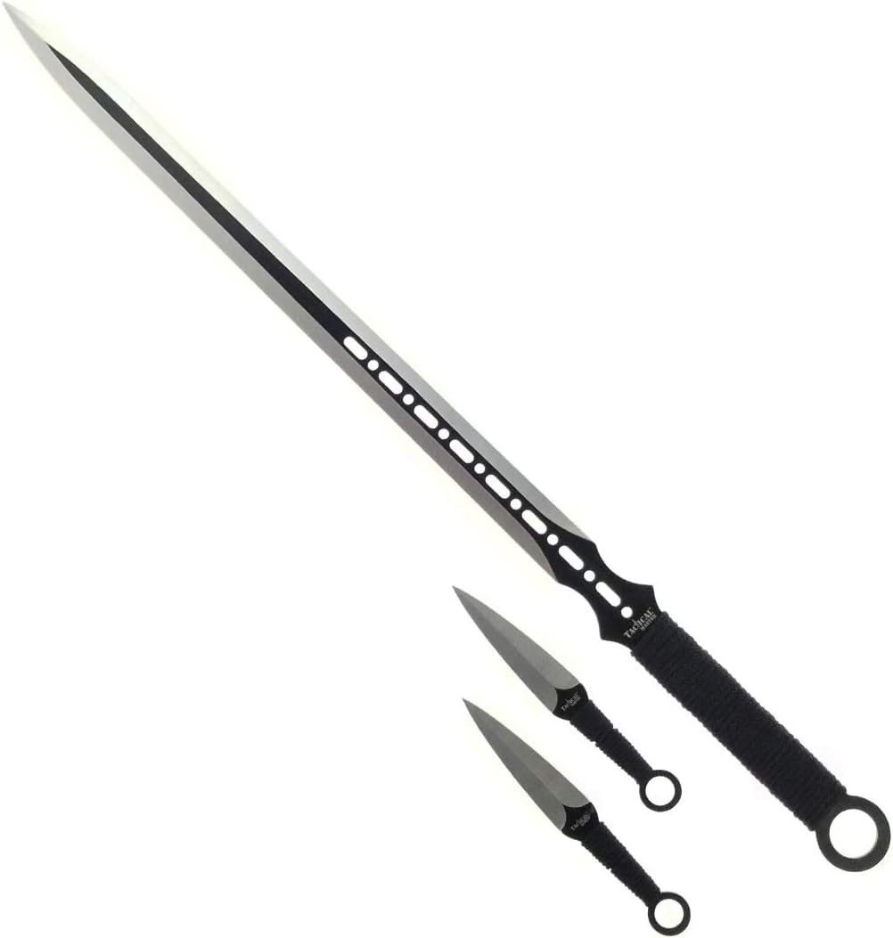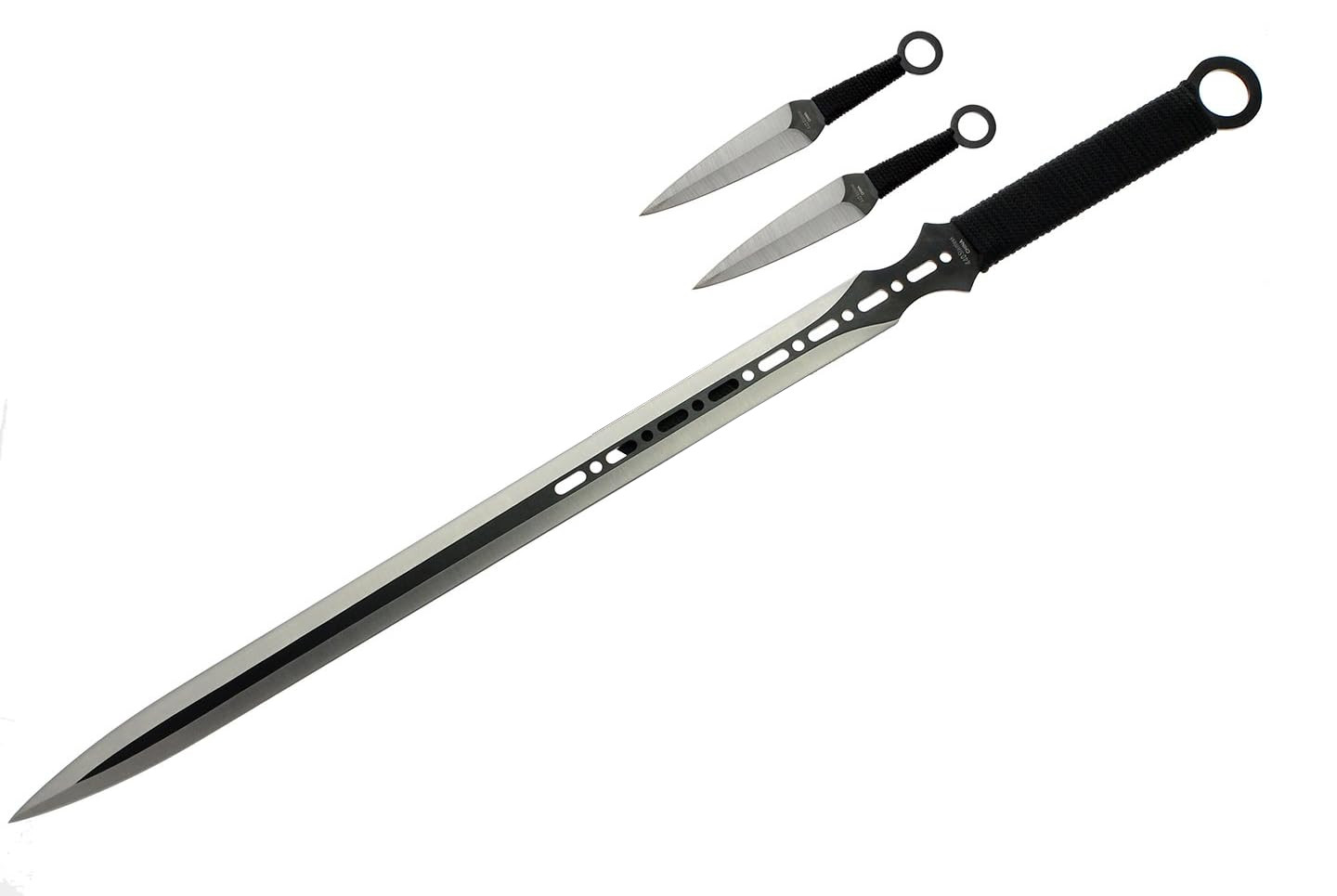 Machetes | Machetes | Ninja Swords | Samurai/Metal Swords | Swords / Spears | TACTICAL MASTERTactical Master 27″ Silver/Blk Ninja Machete Sword with 2 Throwing Knives