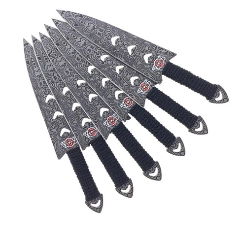 KNIVES | SHOP BY BRAND | TARGET MASTER | Throwing Knives | Throwing Knives | WEAPONSTarget Master 6 Set Falcon Damascus Print Arrow Head Throwing Knife Set 6″