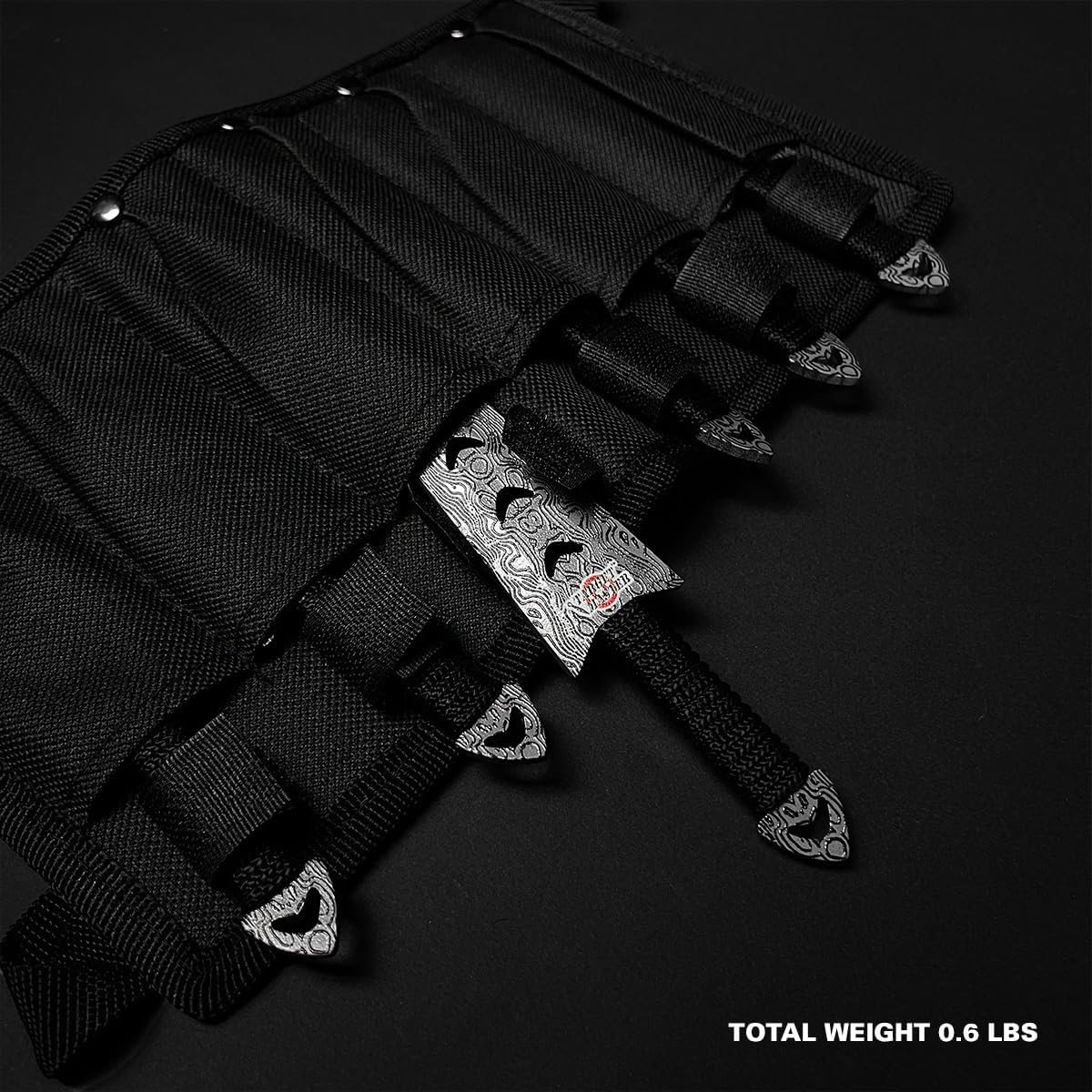 Feel the power of these handmade Target Master Falcon 6 PC 6″ overall Arrow Head Throwing Knife Set. The 440 stainless steel blades and arrowhead style promise precision accuracy and excitement! With a 3″ damascus print blade and nylon wrapped handles, each knife is designed for optimal grip and superior and superior performance. Plus a nylon pouch that can attach to your leg for easy carrying. Unleash your skills with this remarkable set – are you ready?