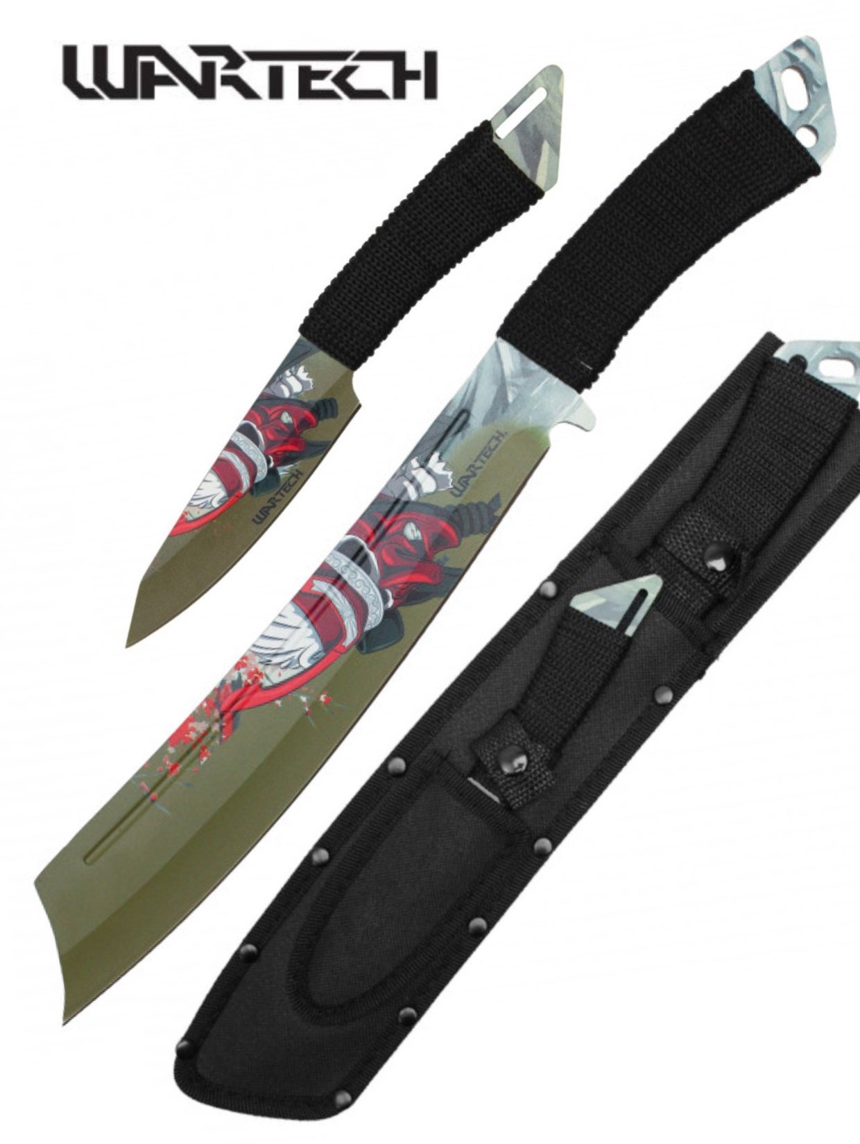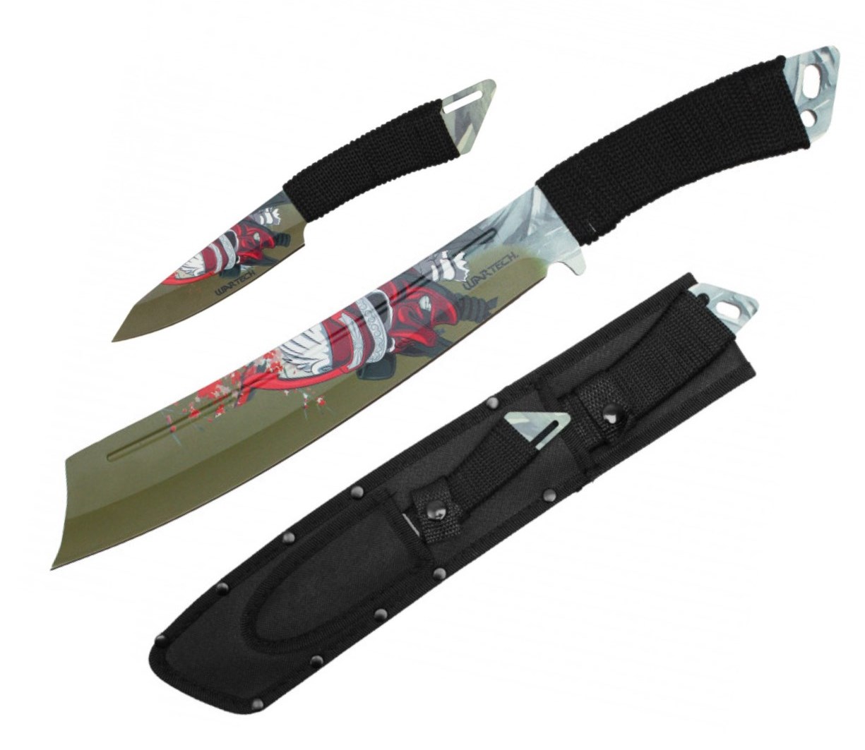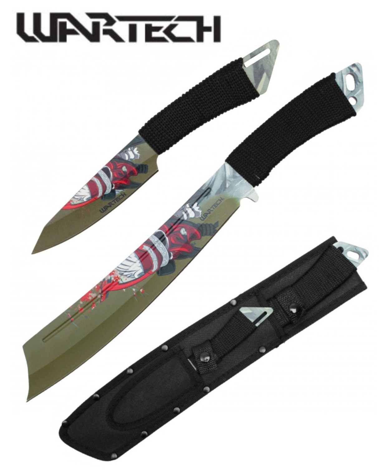 Knives | Machetes | Machetes | Metal | WARTECHWartech 15″ Green/Red Samurai Machete and 8″ Throwing Knife Set