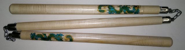 Wooden Three Sectional Staff with Dragon Print